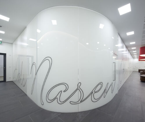 - raumhohe Ganzglastrennwände, gebogene Elemente